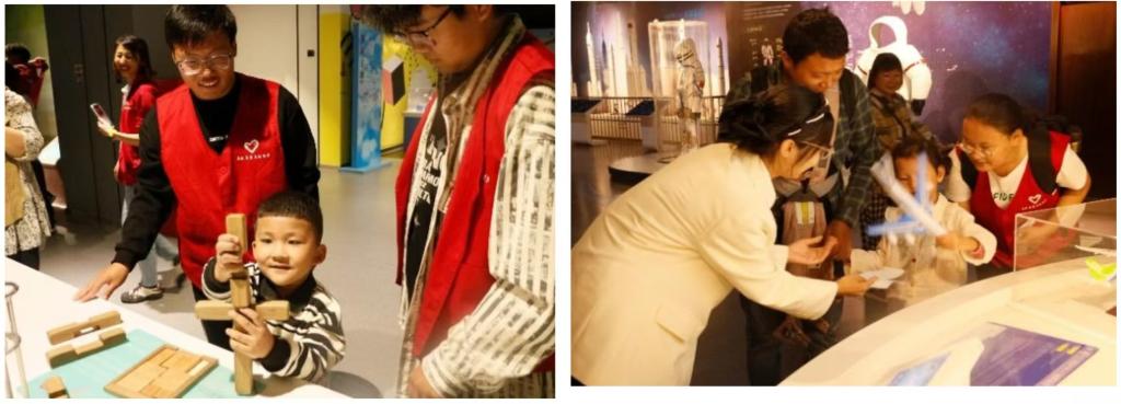 活动中,我院的志愿者们化身为“科学魔术师”,带领着星之光幼儿园的小朋友们踏上一场奇妙的科学探索之旅。在“强国之光”展厅内,志愿者们以生动有趣的语言和直观形象的演示,向小朋友们揭示了我国科技发展的辉煌篇章。从航天航空的壮丽成就到日常生活的科技应用,每一个故事都让孩子们听得津津有味,眼中闪烁着对科技未来的无限向往。