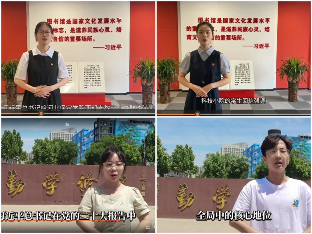 学院党总支高度重视、认真策划,着力创新主题教育模式,打造具有影响力的品牌,组织学生党员拍摄录制学习贯彻习近平新时代中国特色社会主义思想主题教育微党课,学生党员在校史馆前讲述党的二十大报告的重要论述,在校训前领悟习近平的回信精神,用铿锵有力的语言展现了青年党员朝气蓬勃、意气风发的精神风貌,用崇高远大的理想向伟大的党、伟大的祖国深情告白,学院通过发挥学生党员力量,形成“学生支部引领—班团组织参与—党员率先垂范”的研学机制,带动全院学生一起学思想、悟原理,迅速将学习热潮扩大至整个学院。