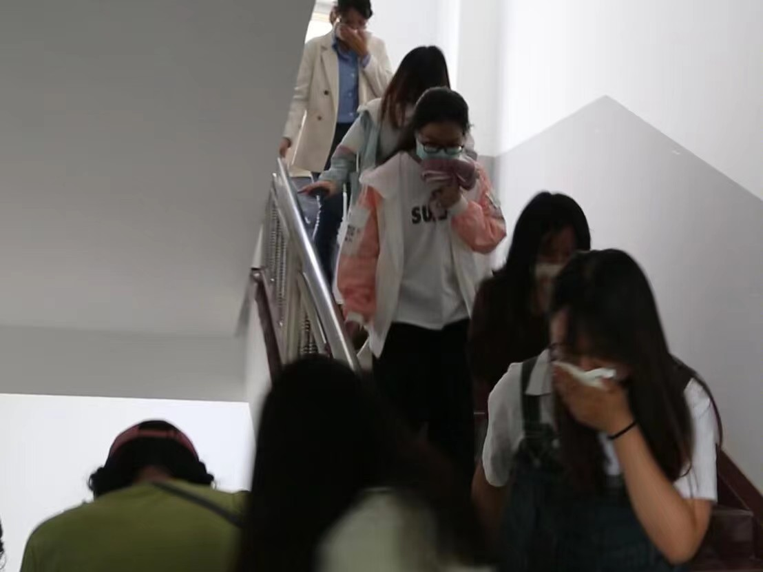 演练开始前,我院安全工作领导小组联合安全处工作人员制定了应急疏散演练方案,在动员会上对方案进行了培训,并详细介绍了实验室四处紧急疏散通道的位置、消防手报的激活方式等内容。