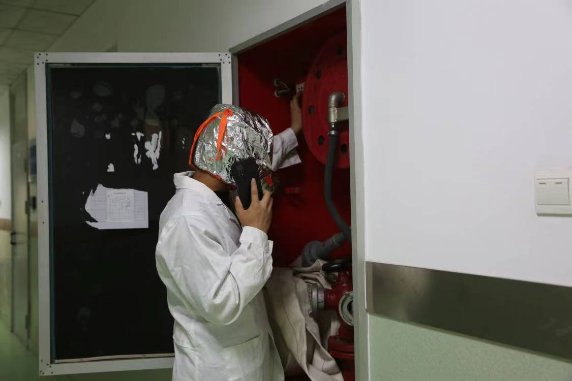 动员会后,在有序的组织与监督下各类人员全部到位,实验室安全员发出指令,火灾现场人员模拟拨打119并按下消防栓内启动报警器,安全警报持续嗡鸣,安全小组成员到达现场安抚学生情绪,指挥安全撤离。