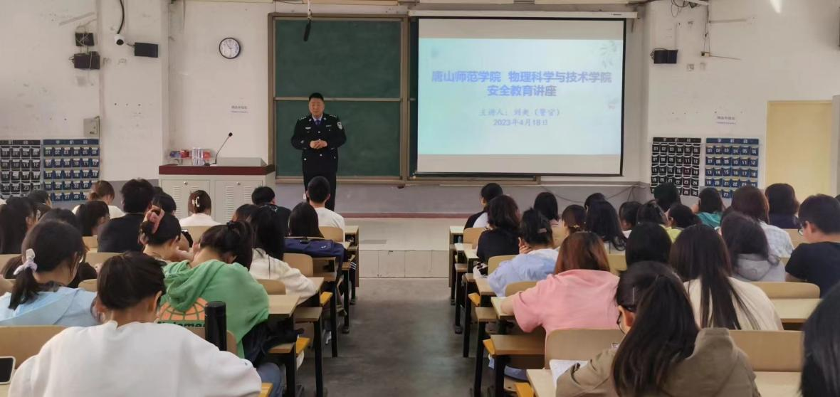 为进一步提高大学生的安全防范意识,推动文明安全的校园建设,我院于2023年4月18日邀请唐山市高新技术开发区公安分局刘爽警官为学院学生进行安全教育培训,我院党总支副书记曹丽君、辅导员冯会会参加了本次活动。