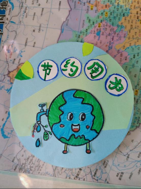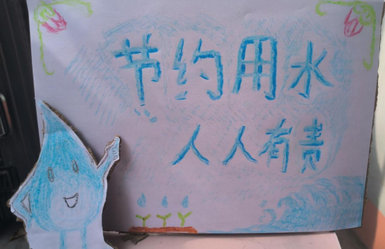 本次活动同学们巧妙地利用身边最常见的A4纸、快递盒和其他废旧物品制作出向大家传递出节约用水意识的卡板。活动伊始,同学们积极响应节水活动号召,纷纷发挥了自己的奇思妙想与艺术细胞,制作了属于自己的 DIY 卡板,并将所做 的dIY 卡板应用于自己的日常生活中。其中,吴绍蕾同学的 DIY 卡板引人称赞:用幼苗的两片叶片托住最后一滴水,将保护水的意识体现的淋漓尽致。无独有偶,攀恩铭同学的 DIY 卡板也十分新颖:将最后一滴水做成可爱的动漫形象,与背后的汪洋大海形成对比,再配上诙谐的文字,吸引更多的同学们加入节约用水的行列中。本次 DIY 卡板活动中,同学们通过查阅资料、上网、动手实践等多种途径对水资源问题进行探究,了解了大量有关水资源的知识,从内心深处感受到节约用水,保护水资源的重要性。