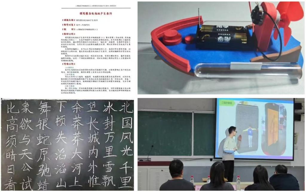 本次大赛分为四个赛道:讲课赛道、二笔字赛道、教学设计(教案)赛道及教具设计赛道。讲课赛道内,参赛者如同舞台上的主角,尽情展现教学魅力;二笔字赛道内,参赛者们笔走龙蛇,作品风格独特,精妙地将传统书法与现代教学理念相融合;教学设计(教案)赛道上,参赛者展现出自己清晰完善的教学方案,彰显了他们对教育理念的深刻理解和教学方法的创新实践;教具设计赛道中,参赛者们则展示了充满创意与智慧的作品,这些设计不仅实用性强,更昭示了未来教育工具的创新趋势。