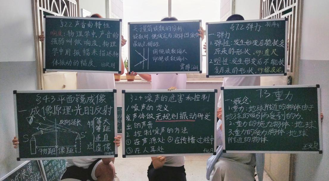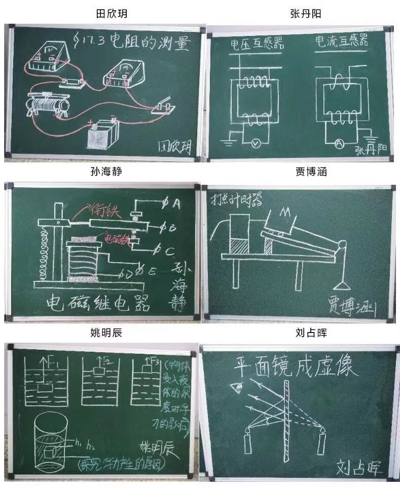 在板画训练活动中,学生们将初中物理知识与板画艺术巧妙结合,创作出一幅幅独具特色的板画作品。这些作品不仅展现了学生们扎实的绘画功底,更将抽象的物理概念具象化,使复杂的物理原理变得直观易懂。在板书训练活动中,学生们认真书写,他们选择以初中物理基础知识点为板书主题,通过工整清晰的字迹和条理分明的布局,将复杂的物理知识以直观、易懂的方式呈现出来。活动后,教师赵淑梅给予学生们指导和建议,帮助他们提高书写和设计水平,同时,她也鼓励学生们相互学习、交流心得,共同进步。