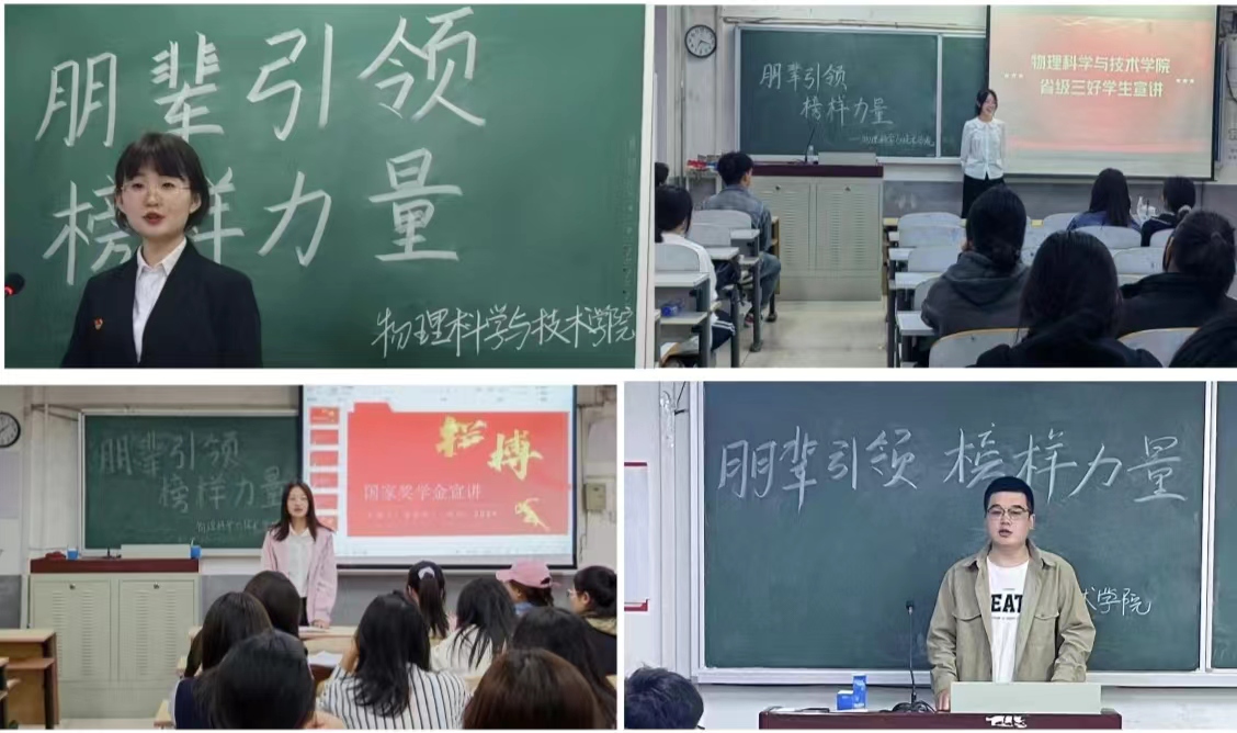 为深入宣传国家奖学金政策,以榜样力量引领前行脚步,充分发扬国家奖学金获得者及省级三好学生在青年学子中的模范引领作用,2024年4月11日,我院开展“朋辈引领,榜样力量”主题宣讲活动。本次活动由学院2022—2023年度国家奖学金获得者索涵益、安彩霞以及2024年省级三好学生靳迪雯、毕鑫妍在4个教室以轮班的形式进行宣讲,2023级全体学生参加活动。