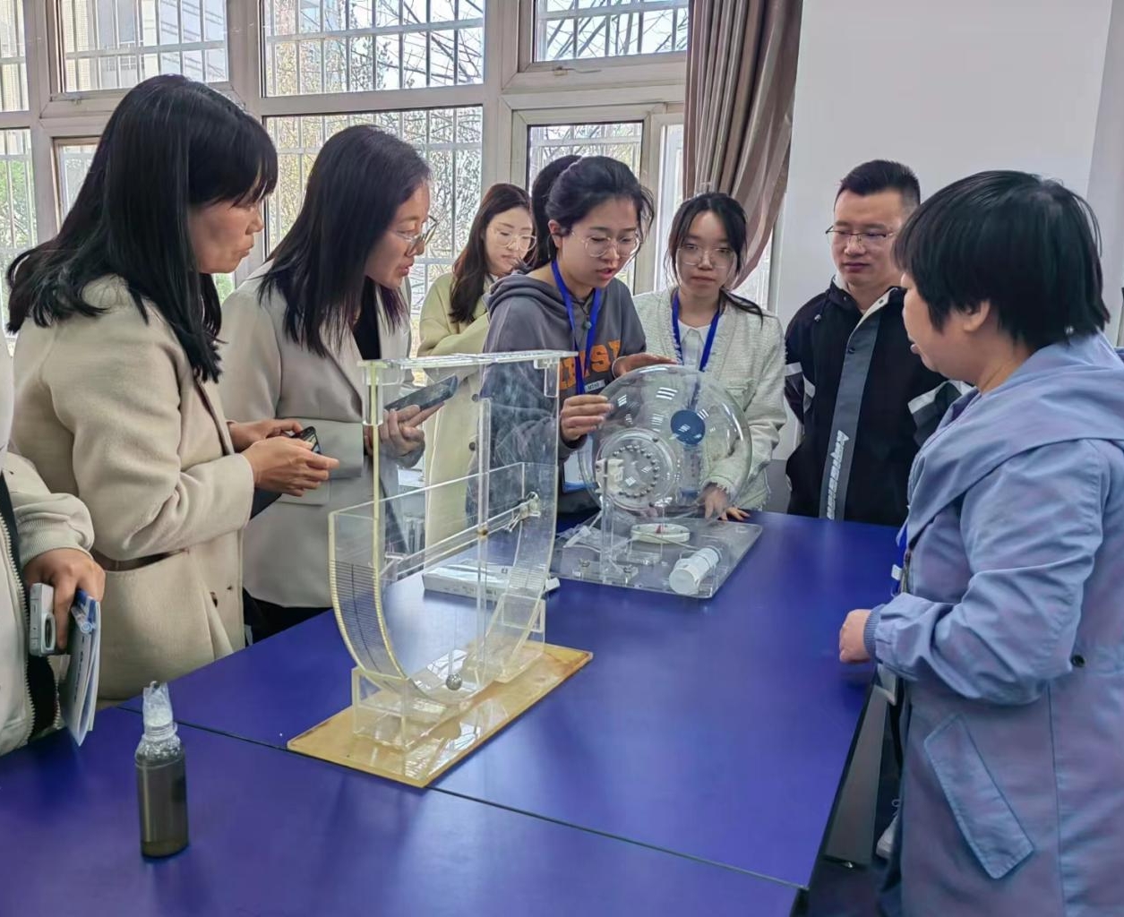 活动伊始,副书记曹丽君代表我院对裕华道第二小学领导老师的到来表示热烈欢迎,并与学院教师陪同裕华道第二小学的领导老师们依次参观了力学实验室、电工电路实验室和电磁学实验室等。在参观过程中,裕华道第二小学的领导老师们对学院师生自制的教具产生了浓厚的兴趣,学院学生代表为领导老师们进行了详细的讲解和展示,充分展现了物理学科的魅力。