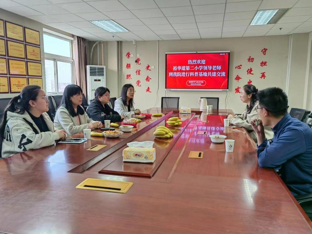 参观结束后,双方就“科普基地共建”进行了深入的交流。副书记曹丽君表示,我院将继续发挥专业优势,通过丰富多样的科普活动,为小学生们提供一个探索科学、走进实验的平台。裕华道第二小学的领导老师们也表示将进一步加强合作,为学院学生们搭建一个优质的科普实践基地。