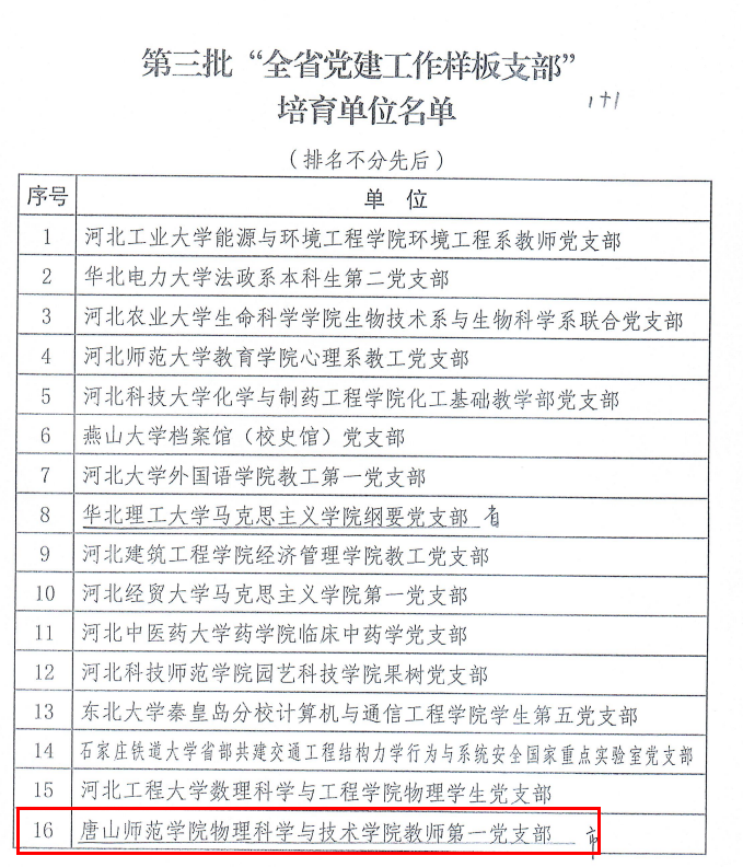 近日,中共河北省委教育工委公布了全省第三批新时代高校党建示范创建和质量创优及“双带头人”教师党支部书记工作室培育单位名单。我校我院教师第一党支部凭借扎实的党建工作基础、创新的工作方法和突出的工作成效成功入选第三批“全省党建工作样板支部”培育单位名单。这标志着该支部在党建工作领域迈出了坚实且重要的一步,成为学院乃至全校基层党建工作的新标杆。