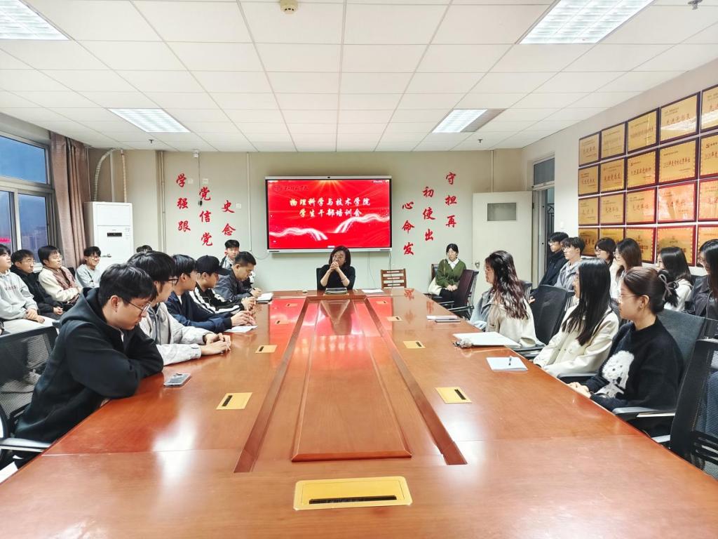 为明确学生干部的职责与使命,进一步提升学生组织服务效能,推动学院高质量发展,3月20日,我院于主楼12层的会议室召开学生干部培训会。会议由学院党总支书记李雪梅主持,副书记谷世海出席,学院学生组织干部参加会议。