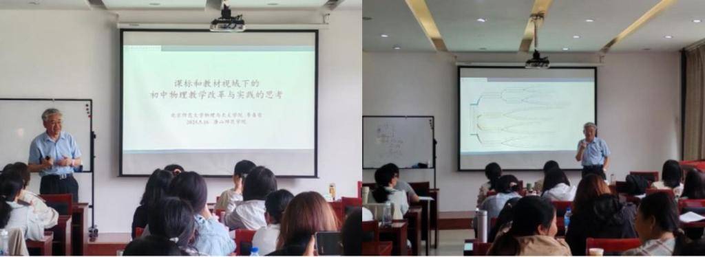 为深化教学改革,提高教学质量,近日,我院特邀北京师范大学教授、博士生导师,全国高等院校物理演示实验教学研究会副理事长、中国教育学会物理教学专业委员会第六届理事、副秘书长、中国物理学会第八届教学委员会中学分委会执委会委员李春密,为河北省“国培计划(2024)”—中西部骨干项目市级骨干教师进阶性深度研修培训项目(初中物理)学员授课。