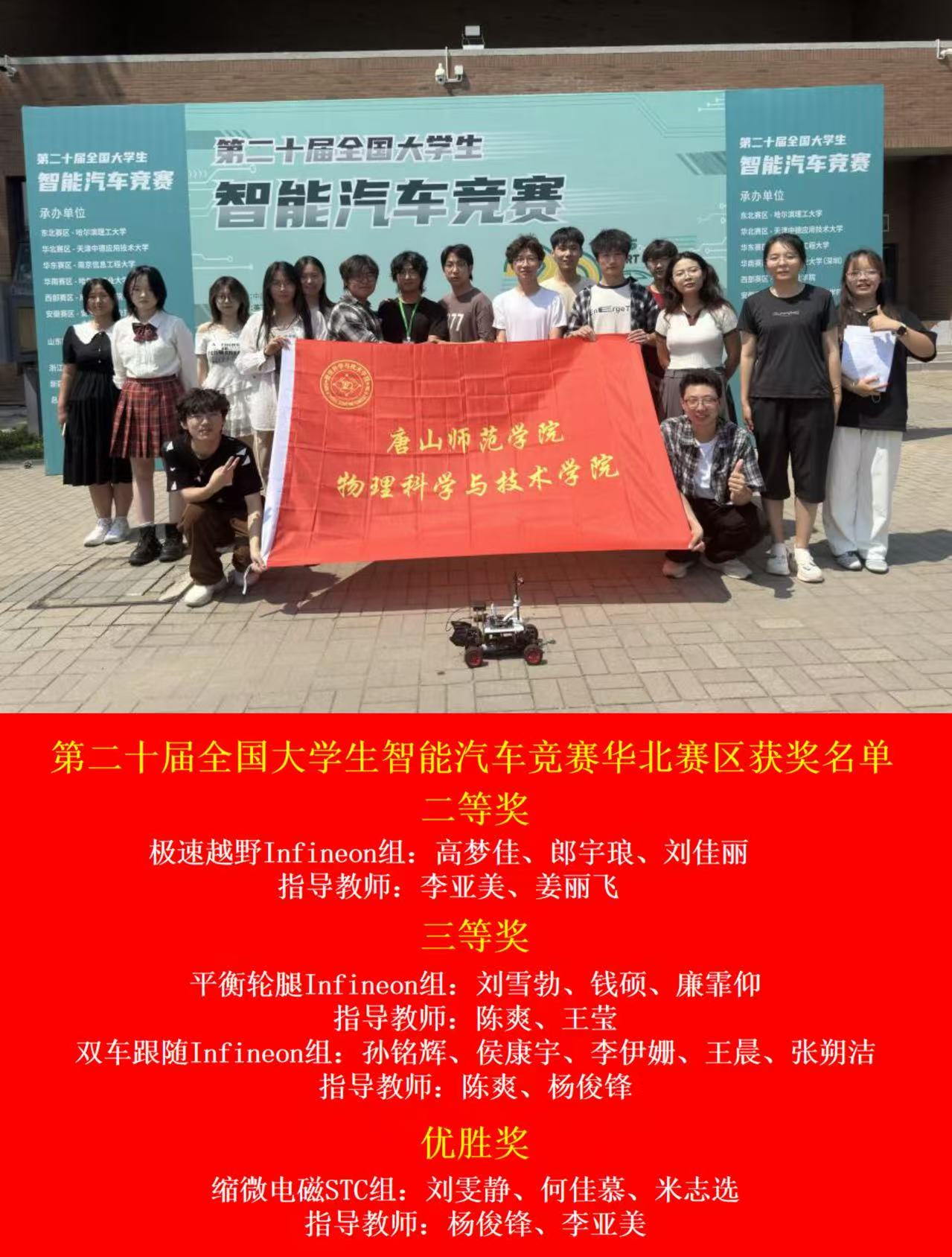 第二十届全国大学生智能汽车竞赛华北赛区赛事在暑期举行。全国大学生智能汽车竞赛是由教育部高等学校自动化类专业教学指导委员会主办的A类学科竞赛,以“立足培养、重在参与、鼓励探索、追求卓越”为宗旨,是国内最具影响力的大学生工程创新实践平台之一。本届华北赛区竞争激烈,集结了北京、天津、河北、山西、河南五省市105所高校的412支精英队伍同场竞技,成为智能汽车领域的一场青春盛宴。我院选派4支团队参赛,共斩获4项荣誉。