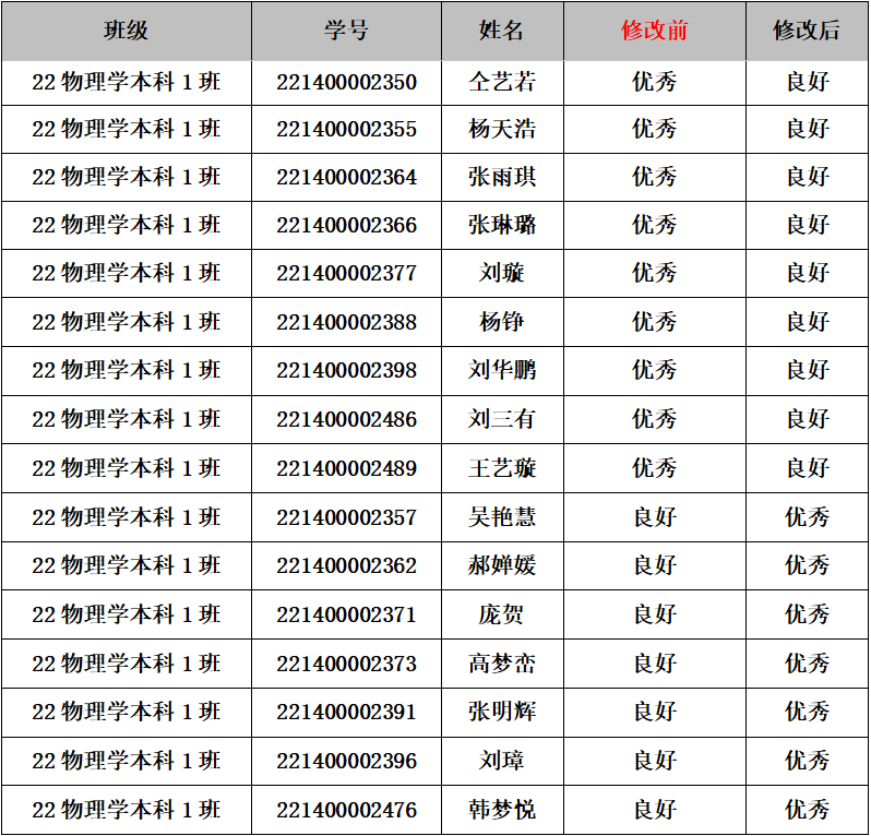 教育实习成绩经复核发现有错误,需退回修改,特此说明。具体修改见下表。