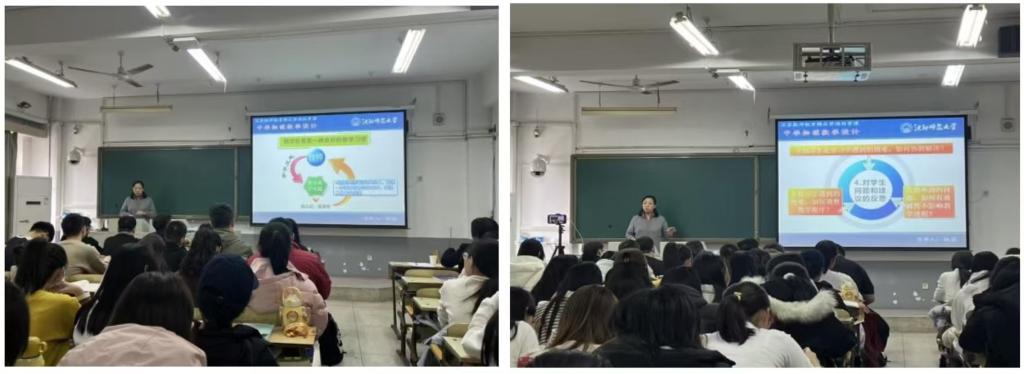 图1.杨薇教授做《教学反思》讲座