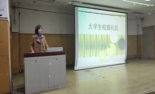 日晚七点,我系于第九阶梯教室举行校园礼仪文明讲座,特邀请常美娜老师给我系全体大一新生进行礼仪讲解。